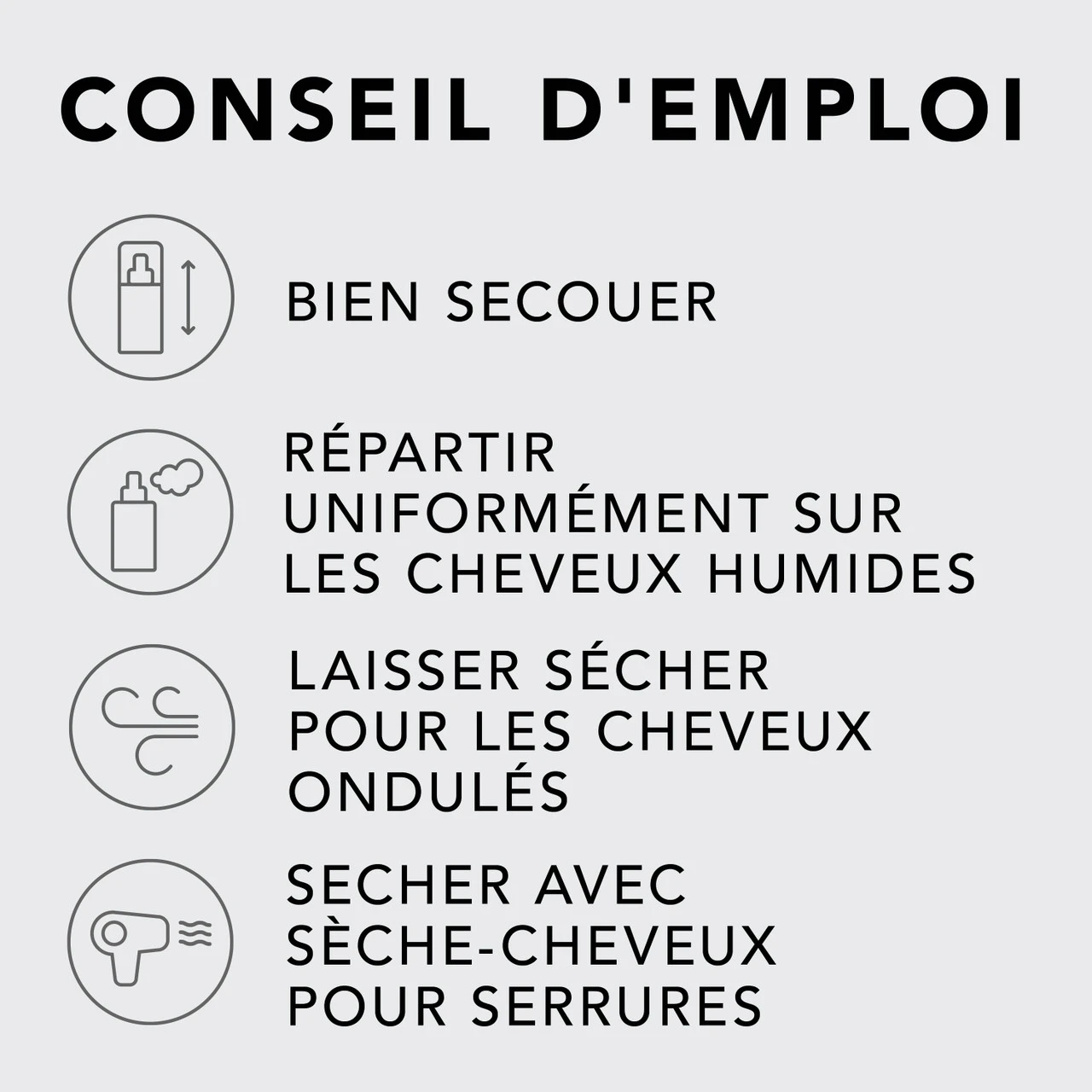 – Agitez énergiquement et appliquez une noisette dans la paume de votre main